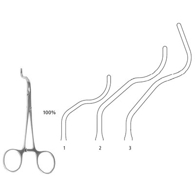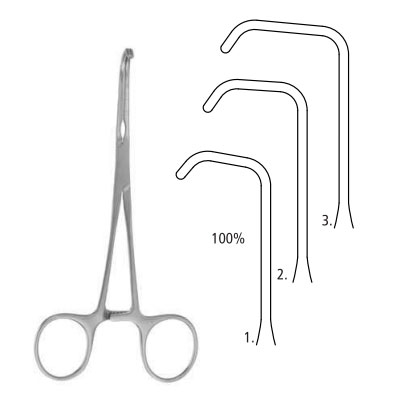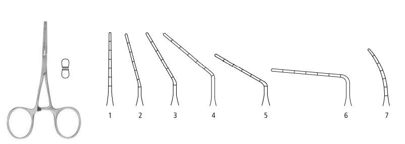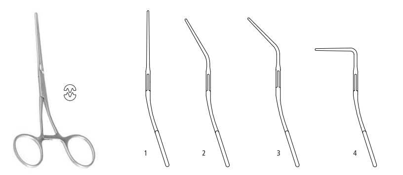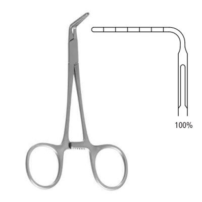 Pediatric blood vessel clamp handles str., jaw ang.